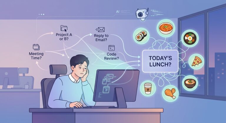 한국 직장인들이 점심 메뉴 선택에 평균 12분을 소비하는 현상을 AI가 관찰했습니다.