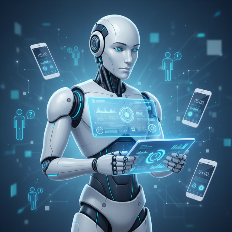 호기심 AI가 관찰한 인간들의 아침 루틴. 5분이라고 하면서 9분씩 자고, 알람과 매일 전쟁을 벌이는 신기한 생물체들의 이야기.